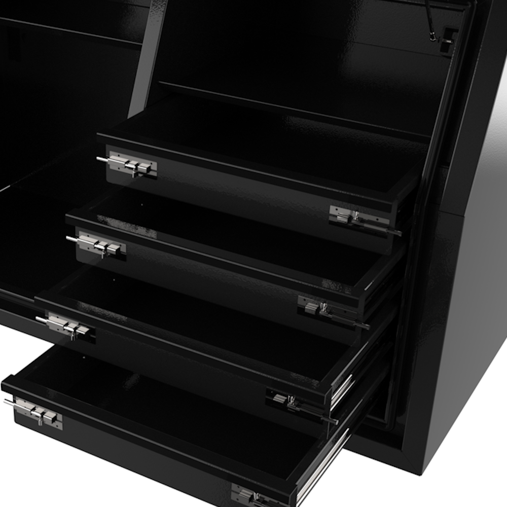 1700 x 600 x 820mm Black Flat Aluminium Full Side Opening 4 Drawer Slide Ute Tool Box Truck Trailer Toolbox Shelving 1768FD-4SB