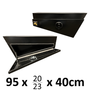 940 x 230 x 400mm Black Flat Aluminium SET PAIR Ute Toolbox Truck Storage Under Body Tray Storage Strap Tool Box Off Road Tapper 924RLN-B