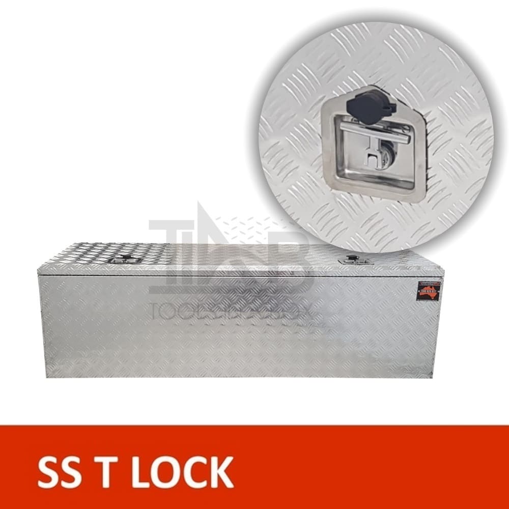 | This is designed to lock up your valuables, The Ute Tool box is hinged with Stainless Steel hinges with a Heavy Duty Stainless T-Locks with Spring Built into the lock to prevent T-Lock handle becoming lose. Our Boxes are Water/Dust Resistant with Fully welding seams. Our toolboxes are built to the highest quality. Contact us today: 1300 026 937 | |